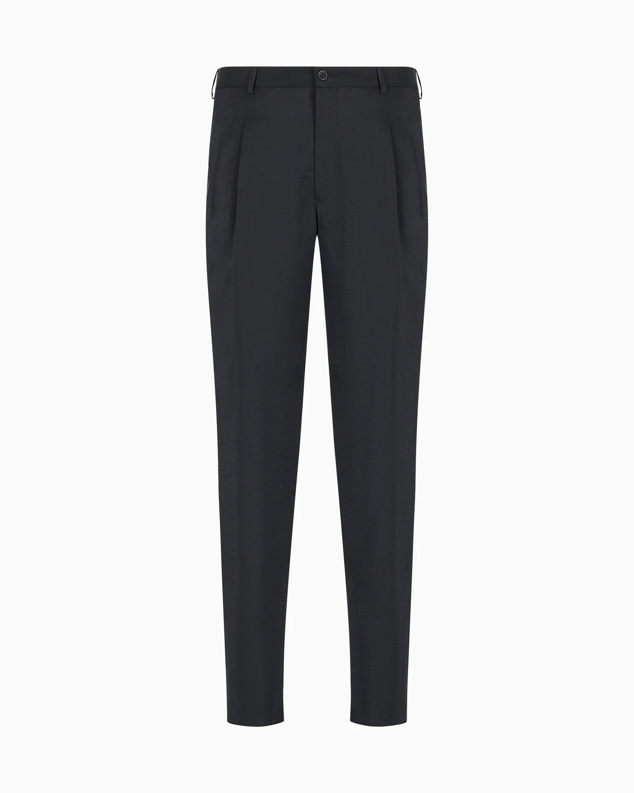 This garment’s flowing deconstructed style reflects the Giorgio Armani aesthetic. Darted trousers made from silk-blend twill that gives the piece a slinky look. They feature a waistband with a zip and button closure, side inseam pockets and double-welt back pockets. Product Code: 8WGPP03DT00Q71UBWF Details Composition 75% Silk 25% Polyamide Double pleats Button and zip closure Side slant pockets Buttoned back welt pocket Cuff width: 17 cm Made in Italy Fitting The model is 188 cm tall and is wearing size 48/M