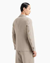 Single-breasted jacket from the Upton Line with a streamlined, completely deconstructed fit: a characteristic that gives the style the iconic fluid lines that are so representative of Giorgio Armani style. This two-button style is made from linen canvas that is lightweight and fresh, and features notched lapels, patch pockets and a breast pocket. Upton Line jacket Notched lapels Two-buttoned, single-breasted closure Two patch pockets Breast patch pocket Button cuffs Two small internal buttoned pockets Unlined Length: 73 cm Made in Italy Product Code: GM000140TE10954U6167