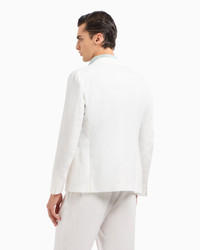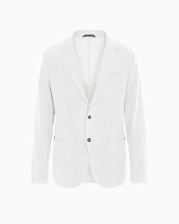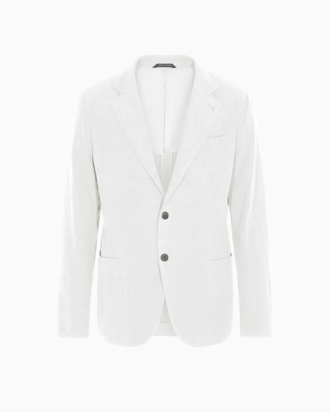 Single-breasted jacket from the Upton line with a streamlined, completely deconstructed fit: a characteristic that gives the style the iconic fluid lines that are so representative of Giorgio Armani style. This two-button style is made from pure linen canvas that is extremely light and fresh, and features notched lapels, patch pockets and a breast pocket. Product Code: 8WGGG02BT040K1U0N8 Details Composition 100% Linen Upton line jacket Single-breasted Notched lapels Buttoned, single-breasted closure Two patch pockets Breast patch pocket Button cuffs Unlined Two small internal buttoned pockets Length: 71 cm Made in Italy Fitting The model is 188 cm tall and is wearing size 48/M