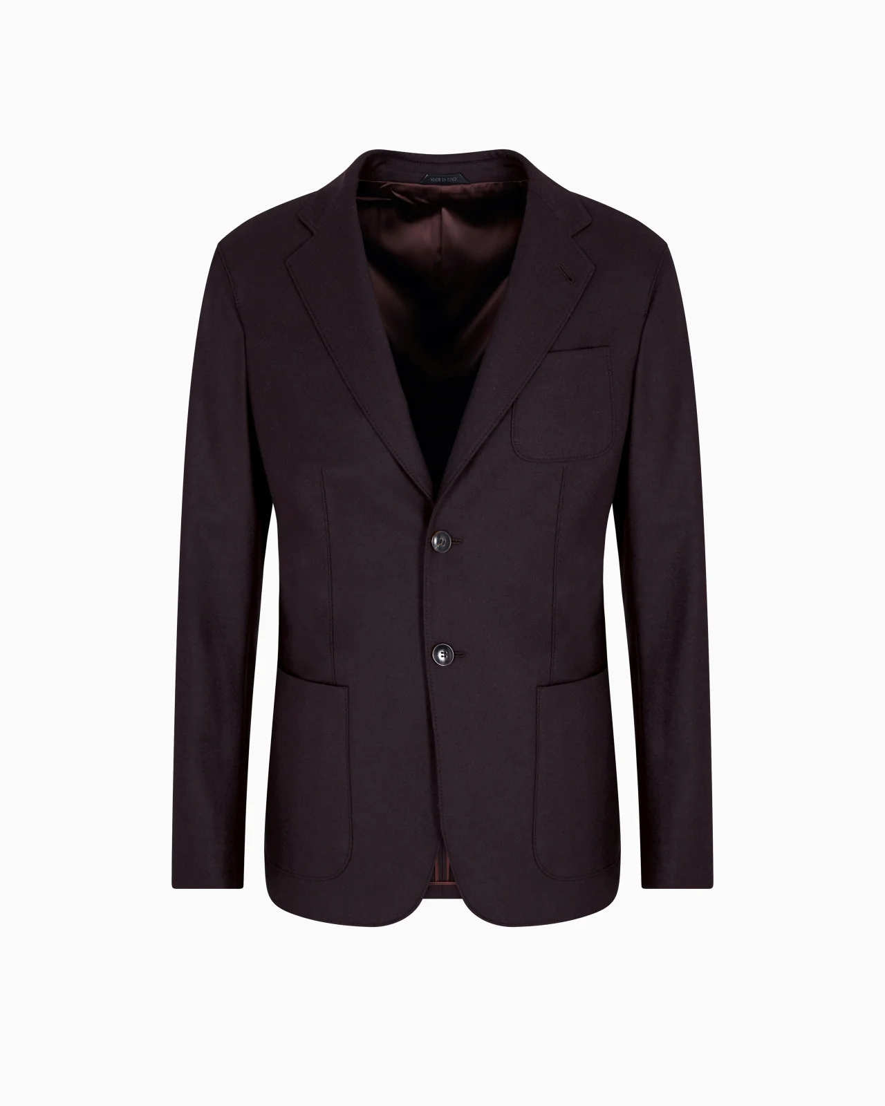 Single-breasted jacket from the Upton Line, made from luxurious stretch cashmere drap. An iconic piece that stands out with its fluid, clean lines, expressing unmistakable Giorgio Armani style. The style is completed by a two-button closure, notched lapels, patch pockets and a breast pocket. A perfect piece for business settings and on smart-casual occasions. The piece is part of the selection made of cashmere drap, a luxurious fabric prized for its softness, lightness and sophistication, with a compact yet plush structure that ensures a comfortable, fluid fit. A selection of tailored pieces designed for classic, sophisticated elegance. Upton Line jacket Notched lapels Two-buttoned, single-breasted closure Two patch pockets Breast patch pocket Button cuffs Two small internal buttoned pockets Unlined Length: 73 cm Made in Italy Product Code: GM000248TE10115U6031
