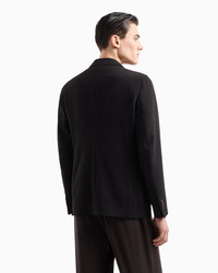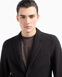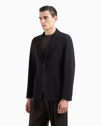 Single-breasted jacket from the Upton line with a streamlined, completely deconstructed fit: a characteristic that gives the style the iconic fluid lines that are so representative of Giorgio Armani style. This two-button style is made from virgin wool and cashmere in a distinctive seersucker weave, and features notched lapels, patch pockets and a breast pocket. Product Code: GM000140TE112001U8137 Details Composition 91% Virgin Wool 8% Cashmere 1% Elastane Upton line jacket Notched lapels Two-buttoned, single-breasted closure Two patch pockets Breast patch pocket Button cuffs Unlined Two small internal buttoned pockets Length: 73 cm Made in Italy Fitting The model is 188 cm tall and is wearing size 48 / M