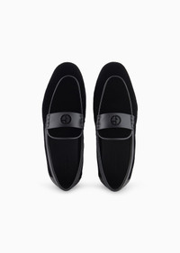 A new take on driver-inspired loafers, crafted from elegant velvet with a tapered shape. The style features an extremely flexible and supple construction, which ensures a comfortable fit. Details such as the velvet GA logo and matching leather inserts complete the shoe, which has a sole with rubber inserts. Product Code: X2B127XR2681K001 Details Composition 65% Viscose 35% Cupro Pointed shape Smooth leather details Velvet GA logo detail on the smooth leather vamp Sole with inserts in fine-ribbed rubber Made in Italy