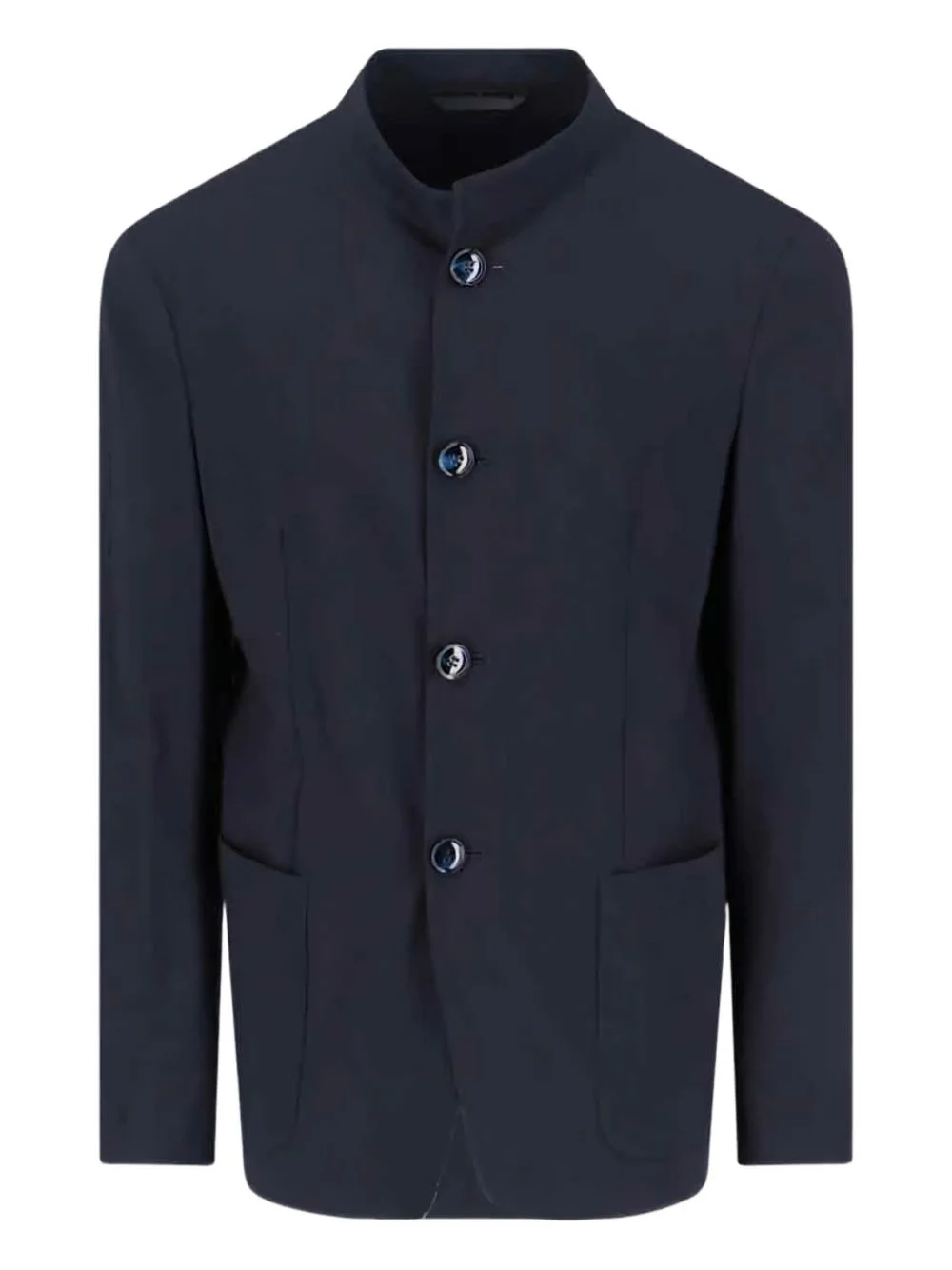 button-up jacket Highlights - Blue - Mandarin collar - Front button fastening - Long sleeves - Two front patch pockets Imported Composition Virgin Wool 100% Washing instructions Read Manufacturer Guidelines