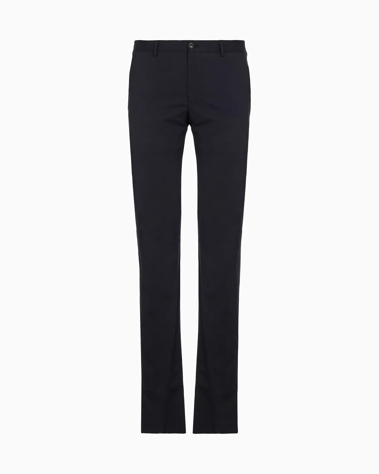 An evergreen garment that remains the mainstay of the wardrobe. Classic-fitting trousers made from pure wool with slant pockets on the front and double welt pocket with button on the back. Product Code: 8CGPP027T00FN1UBUV Details Composition 100% Virgin Wool Flat-front trousers Button and zip fastening Two side welt pockets Two buttoned back pockets Hem width: 19 cm Made in Italy Fitting The model is 188 cm tall and is wearing size 48/M