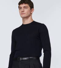 Product Details - Material: 100% virgin wool - Care instructions: hand wash - Made in Italy - Designer color name: Blu Navy - Regular fit - Collar: crewneck - Cuff: ribbed - Hem: ribbed - Unlined - Yarn weight: fine - Item number: P00858846 Size & Fit - True to size - Straight fit - Stretchy fabric - Falls to the hip - The model in the picture is 185cm-6'1" and wearing a size IT 48