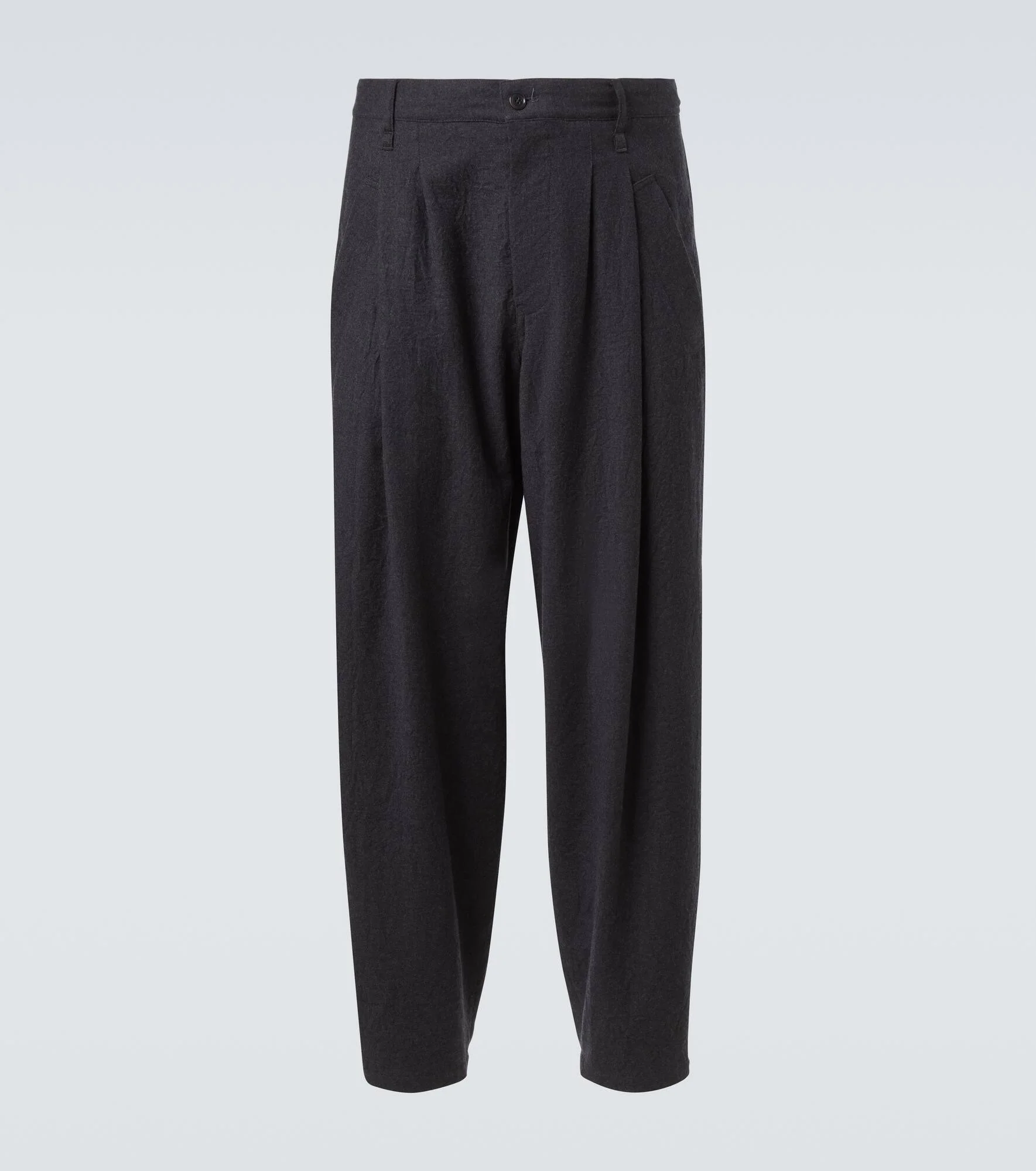 Known for its streamlined modernity, Giorgio Armani delivers polished essentials like these pants. They're made from virgin wool with fluid, tapered legs, soft pleats, and various pockets. Product Details - Material: 100% virgin wool - Care instructions: dry clean - Made in Italy - Designer color name: Moonless Night - Item color: gray - Material II: 100% cotton - Contains non-textile parts of animal origin - Pockets: slant pockets, rear pockets - Closure: zip and button fastening - Item number: P01047846 Size & Fit - True to size - Non-stretchy fabric - Tapered leg - The model in the picture is 185cm-6'1" and wearing a size 50