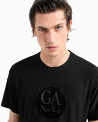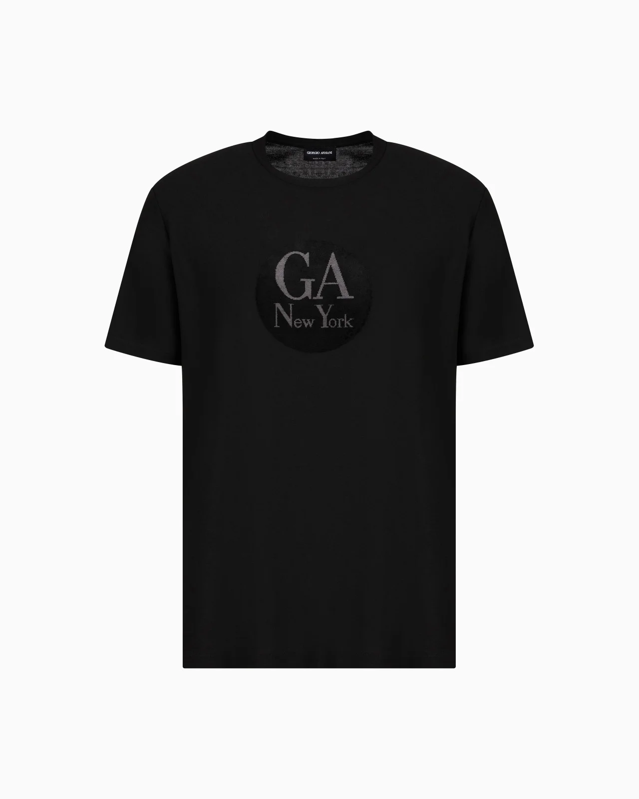 Regular-fit, cosy viscose crew-neck T-shirt. The short-sleeved style is customised with a velvet front insert with a contrasting GA New York logo. A versatile, sophisticated piece that complements many daytime looks. Crew neck Short sleeves Velvet front insert with contrasting "GA New York" logo Made in Italy Product Code: GM001668TE15776UC001