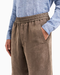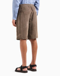 Bermuda shorts made of Lyocell canvas, a semi-synthetic fibre that has an exceptionally low impact on the environment and is produced from eucalyptus trees. It is valued for its good resistance, capacity to absorb moisture, breathability and wrinkle resistance. The style features an elasticated waistband and has side and back pockets, the only details that embellish its clean, minimalist lines. A relaxed and versatile offering that is perfect with relaxed shirts or T-shirts.<br>The piece is part of the Holiday selection that plays with a striking colour palette, incorporating black onyx, sky blue and ivory. Such shades are combined with luxurious fabrics like linen and silk, and iconic ones, like cupro and Lyocell, creating a unique experience in texture. Modern, relaxed shapes dress up different occasions with unmistakable Giorgio Armani style. Elasticated waistband Two side pockets Two back pockets Cuff width: 31.5 cm Made in Italy Product Code: GM000183TE16002U7001