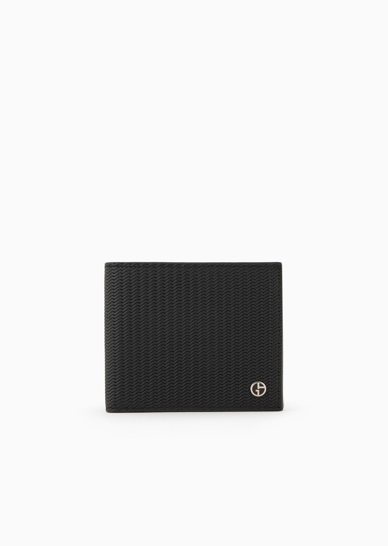 Bifold wallet in supple nappa leather with interior card holder slots and a banknote compartment. The style is embellished with an embroidered GA logo on the front with a braided effect. Product Code: Y2R120YS16E180001 Details Composition 100% Calf-skin leather Woven-effect embroidered GA logo Banknote compartment Internal card holder slots Measurements: 12 x 9.5 x 2 cm Made in Italy