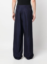 wide-leg linen-blend trousers Highlights - Navy blue - Linen/flax blend - Belt loops - Concealed front fastening - Two side slit pockets - Two rear welt pockets - Wide leg Made in Italy Composition Linen/Flax 59%, Viscose 41% SIZE & FIT Model measurements Height 6 ft 0 in(1.84 m) Bust/Chest 36.22 in(92 cm) Hips 35.43 in(90 cm) Waist 26.77 in(68 cm) FittingInformation Designed with a wide leg, offering a loose and roomy fit Made from a midweight non-stretch fabric This piece fits true to size – take your usual size Washing instructions Dry Clean Only