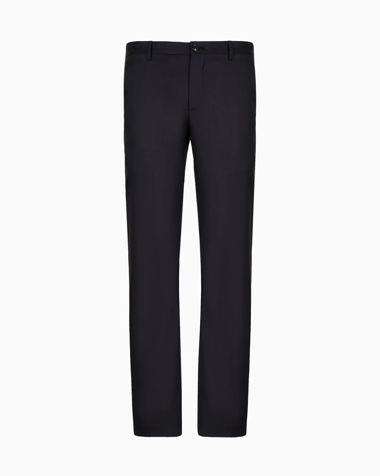 Quality fabric with a perfect fit: the secret to Giorgio Armani trousers. This solid-coloured, wool and cashmere item is perfect for a wide array of outfits. Product Code: 8WGPP01DT003K1UBUV Details Composition 90% Virgin Wool 10% Cashmere Button and zip fastening Slant pockets Back buttoned welt pockets Cuff width: 19 cm Made in Italy Fitting The model is 6' and is wearing size 48 (IT)