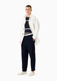 Trousers made of wool and viscose velvet with a cannete effect. With a single pleat, side welt pockets and a button-and-zip fastening, the style stands out for its relaxed, fresh attitude: Perfect for pairing with the collection's shirts and T-shirts in an endless variety of looks. Product Code: 4SGPP12LT003N1UBV4 Details Composition 50% Viscose 50% Virgin Wool Drop-effect single-pleat style Elasticated waist Button and zip closure Two welt pockets Two buttoned back welt pockets Cuff width: 19 cm Made in Italy Fitting The model is 188 cm tall and is wearing size 48/M