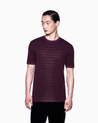 Crew-neck T-shirt made of cosy, warm virgin wool jersey, featuring embossed horizontal stripes that create a three-dimensional effect. The style is defined by matching knit trims, and thanks to its essential line, is a versatile and sophisticated complement to a wide array of looks. Crew neck Short sleeves Embossed horizontal stripes Made in Italy Product Code: GM001988TE17022U5079