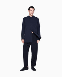 Shirt jacket in pure virgin wool canvas, a lightweight and breathable fabric with a comfortable feel. Its streamlined design is embellished with a guru collar, mother-of-pearl buttons on the front closure and cuffs, a back yoke and side slits. An extremely versatile piece, perfect for effortless elegance. Guru collar Mother-of-pearl button closure Cuffs with mother-of-pearl buttons Back yoke Side slits Unlined Length: 86 cm Made in Italy Product Code: GM002251TE17862UB109
