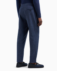 These casual men’s trousers are defined by a fluid cut, unrestricted fit, cosy fabric and laid-back allure. This one-pleat style with an elasticated waistband and comfortable fit is made of wool, silk and linen canvas and features a slub effect that gives a 3D look to the fabric. A perfect item to pair with the collection’s shirts and jumpers. Elasticated waist Two side pockets Zip closure Back pocket with button Cuff width: 18 cm Made in Italy Product Code: GM001193TE13965MB073