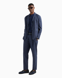 WOOL, SILK AND LINEN CANVAS SINGLE-PLEAT TROUSERS