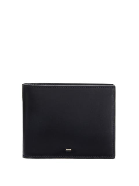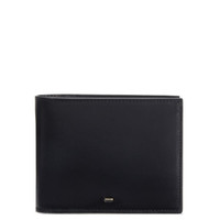 Product Details Leather bi-fold wallet with metal detail, 2 banknote pockets and 8 inner card slots. - Black leather - Golden metal accessory - 2 banknote pockets - 8 card slots - Size: 118 mm x 95 mm ORIGIN: ITALY COLOR: BLACK