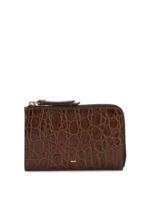 Product Details Crocodile-print leather card holder with metal detail, central pocket and 6 card slots. - Light brown crocodile-print leather - Golden metal accessory - 1 divider - 6 card slots - Size: 70 mm x 109 mm ORIGIN: ITALY COLOR: BROWN