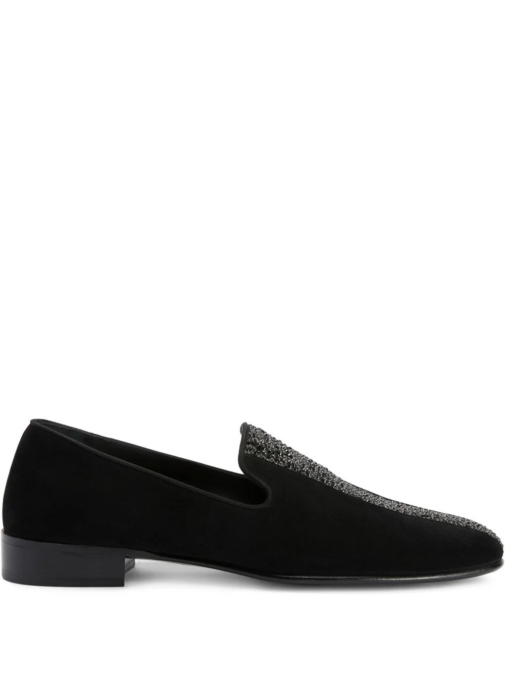 Alvaro loafers Highlights - Black - Slip-on style - Rhinestone embellishment - Leather trim - Almond toe Made in Italy Composition Outer: Fabric 100%, Suede 100%, Rhinestone 100% Sole: Leather 100%