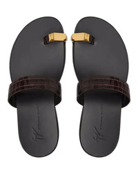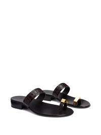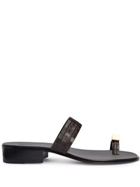 Bardack snakeskin-effect toe-loop sandals Highlights - Black - Leather - Gold-tone hardware - Snakeskin effect - Round toe - Branded insole - Flat rubber sole Made in Italy Composition Outer: Leather 100% Lining: Leather 100% Sole: Leather 100% SIZE & FIT Measurement HEEL 1.37 in(3.5 cm)