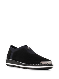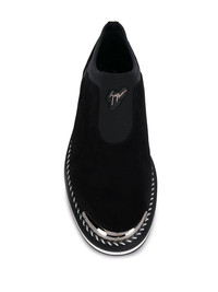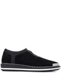 Barton loafers Guiseppe Zanotti Design creates boundary-pushing footwear for connoisseurs of flawless construction and opulent detailing. Case in point: these black leather and suede Barton loafers. Featuring a slip-on style, a metal toe cap, a front logo plaque and a flat rubber sole. Made in Italy Composition Outer: Suede 100%, Polyester 100% Sole: Rubber 100% Lining: Calf Leather 100% SIZE & FIT Measurement Sole height 1.18 in(3 cm) HEEL 1.57 in(4 cm)