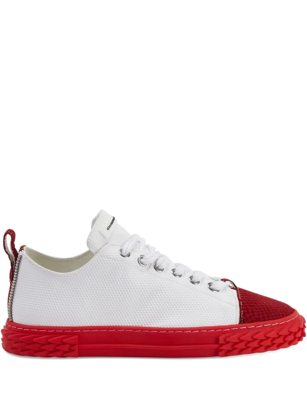 Blabber panelled serrated-sole sneakers Highlights - White and red - Lace-up fastening - Serrated sole - Leather heel panel - Zip detail Made in Italy Composition Outer: Leather 100% Sole: Rubber 100% Lining: Calf Leather 100%