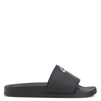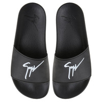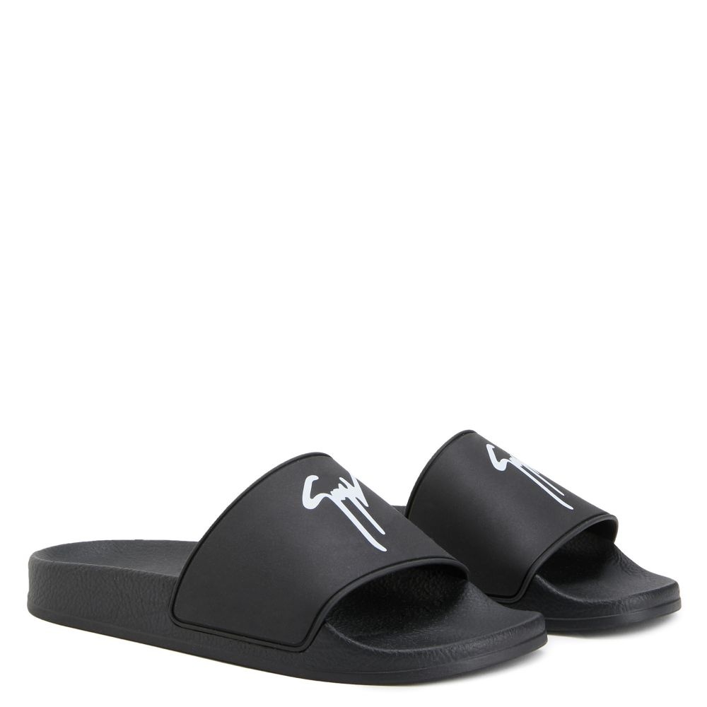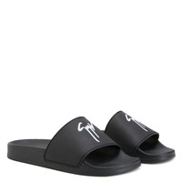 Product Details Slider sandals in black TPU, with Signature detail and comfortable rubber sole. Black TPU upper White screen print Signature detail Rubber sole with logo Made in Italy