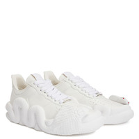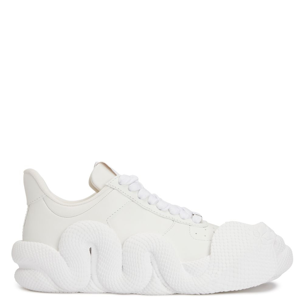 Product Details White leather ''Cobras'' trainers with tone-on-tone cotton laces and a small, logo-bearing silver and white metal buckle. This shoe features the iconic white fabric Signature detail on the tongue and the new, bold white rubber ''Cobras'' sole completes the bold design of this unique shoe. White leather Signature label White cotton laces Metal GZ accessory Rubber ''Cobra'' sole with logo