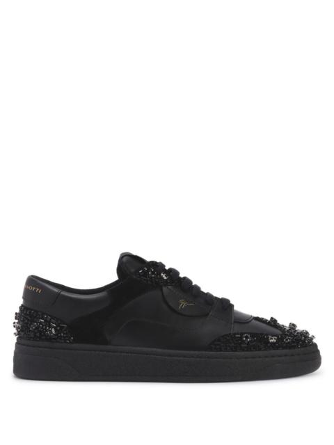 Product Details High-top lace-up sneakers in velvet and patent leather with two tone-on-tone plaques, side zippers and rubber sole. - Upper: 50% goatskin suede, 50% calfskin - Lining: calfskin - Insole: calfskin - Sole: Rubber ORIGIN: ITALY COLOR: BLUE