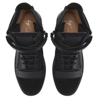 Product Details High-top lace-up sneakers in velvet and patent leather with two tone-on-tone plaques, side zippers and rubber sole. - Upper: 50% goatskin suede, 50% calfskin - Lining: calfskin - Insole: calfskin - Sole: Rubber ORIGIN: ITALY COLOR: BLACK