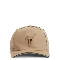 Product Details Baseball cap crafted from beige pure cotton with fabric inner lining, featuring the iconic metal 'Signature' matching detail, a semi-rigid curved brim and an adjustable closure on the back. Beige cotton fabric (100% CO) Matching 'Signature' detail Fabric inner lining One size Made in Italy