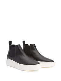 Conley leather ankle boots black/white leather logo plaque round toe elasticated side panels ankle-length pull-tab at the heel flat rubber sole Made in Italy Composition Sole: Rubber 100%