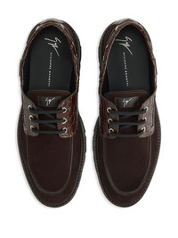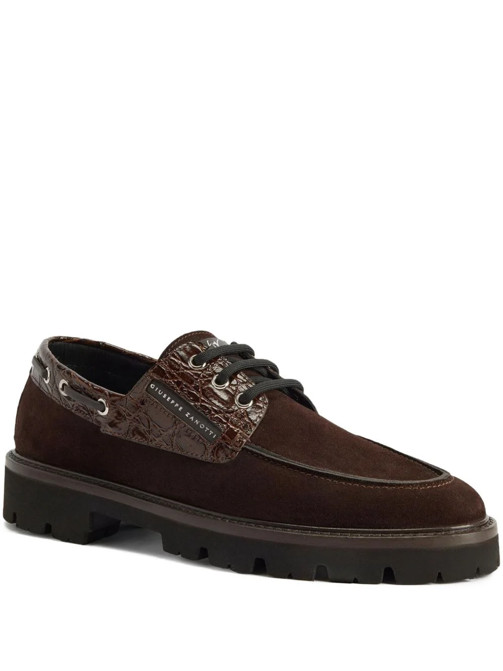 crocodile-embossed suede lace-up shoes Highlights - Brown - Suede upper - Crocodile-embossed leather detail - Lace-up fastening - Rubber sole - Boat shoe-style detailing Made in Italy Composition Outer: Calf Suede 100% Sole: Calf Leather 100%