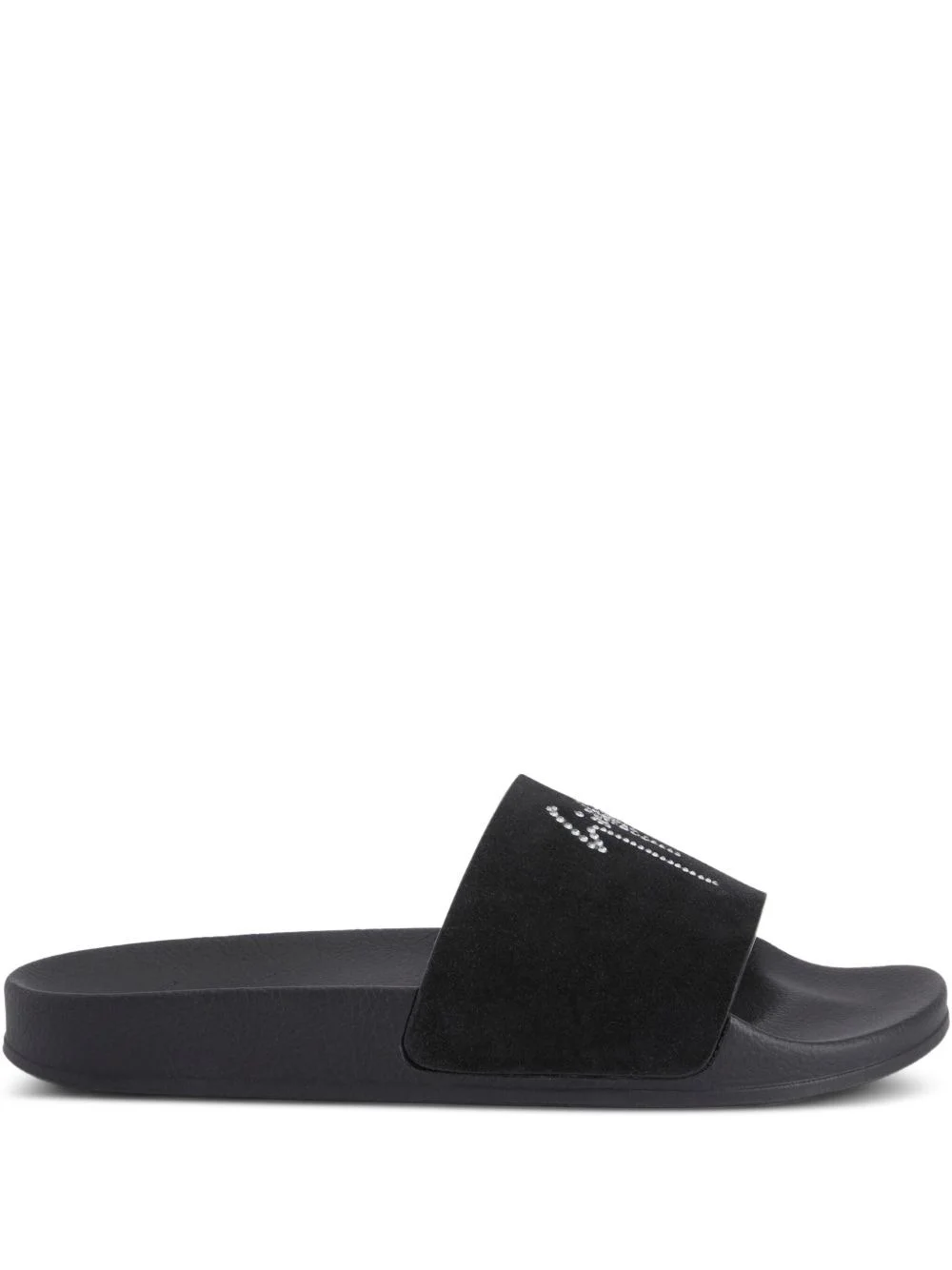 crystal-embellished slides Highlights - Black - Suede upper - Crystal embellishment - Open toe - Flat sole - Slip-on style Made in Italy Composition Outer: Leather 100% Sole: Rubber 100% Lining: Leather 100%