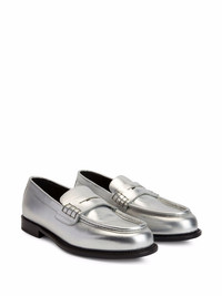 Euro Loafer penny-slot loafers An updated classic, these Euro loafers from Giuseppe Zanotti offer a timeless silhouette. The pair features a penny slot and a silver-tone metallic finish. Highlights - Silver-tone - Leather - Metallic finish - Penny slot - Round toe - Slip-on style - Branded leather insole - Leather sole Made in Italy Composition Lining: Leather 100% Outer: Leather 100% Sole: Leather 100% SIZE & FIT Measurement HEEL 0.78 in(2 cm)