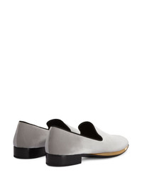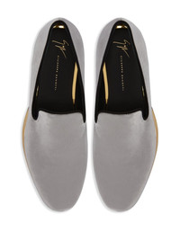 GZ Flash loafers Made from plush velvet in Italy, the Flash loafers are defined by their signature stacked heel and mirrored-effect gold-tone accents at the outsole – one of Giuseppe Zanotti's most celebrated motifs. Highlights - Light grey - Velvet - Slip-on style - Almond toe - Branded leather insole - Gold-tone hardware - Low stacked heel Made in Italy Composition Outer: Velvet 100% Sole: Leather 100% Lining: Leather 100% SIZE & FIT Measurement HEEL 0.59 in(1.5 cm)