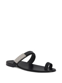 Flavien leather sandals Highlights - Black - Touch-strap fastening - Single toe strap - Crystal embellishment - Branded footbed Made in Italy Composition Outer: Leather 100%, Rhinestone 100% Sole: Leather 100% Lining: Calf Leather 100%