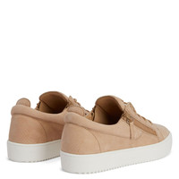 Product Details These low-top sneakers, crafted from python-print beige nubuck with cotton laces, feature a matching rubberised 'Signature' detail on the tongue and side zippers on the upper, a white rubber sole gives the design a perfect finish. Men's sneakers Beige python-print nubuck Beige rubberised metal 'Signature' Beige cotton laces White rubber sole with logo Made in Italy