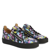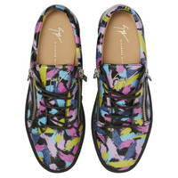 Product Details Low-top sneakers crafted from black synthetic fabric with leather effect and printed with multicoloured glitter brushstrokes, featuring black cotton laces, a 'Signature' detail on the tongue and silver metal side zipper fastenings; a black rubber sole gives the design a perfect finish. Black synthetic fabric with leather effect and printed with multicoloured glitter brushstrokes (58% PU; 42% PA) Silver metal 'Signature' detail Silver metal zipper Black cotton laces Black rubber sole with logo Made in Italy