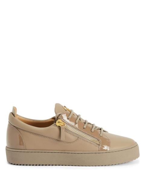 Product Details Low-top lace-up sneakers in leather and patent leather with two side zips and rubber sole. - Black patent leather and leather - Golden metal Signature detail - Black cotton laces - Black rubber sole with logo ORIGIN: ITALY COLOR: BLACK