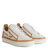 Product Details These low-top sneakers, crafted from white leather with matching cotton laces, feature a beige colour work on the edges of the upper, a white metal ‘Signature’ detail on the tongue, white plastic side zippers and rubber soles with logo. Men's sneakers White leather Beige colour work on the edges of the upper White cotton laces White plastic zippers White rubber sole with logo Made in Italy