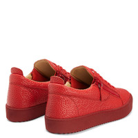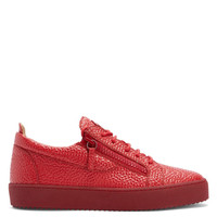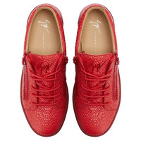 Product Details Low-top sneakers crafted from red leather with a pyramidal print and matching cotton laces, featuring a red rubberised 'Signature' detail on the tongue and silver side zippers fastenings on the upper; a red rubber sole gives the design a perfect finish. Red pyramid-print leather Red rubberised metal 'Signature' detail Red plastic zippers Red cotton laces Red rubber sole with logo Made in Italy
