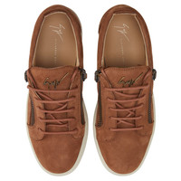 Product Details Low-top nubuck leather sneakers with tonal laces, metal Signature detail on the tongue and side zippers on the upper. Rubber sole - Upper: 100% nubuck calfskin - Lining: calfskin - Insole: calfskin - Sole: Rubber ORIGIN: ITALY COLOR: BROWN
