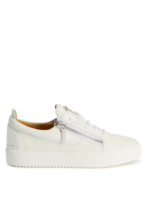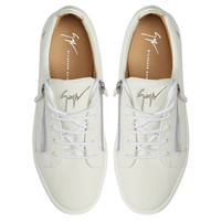 Product Details Low-top sneakers crafted from white leather and patent leather with matching cotton laces, featuring a silver metal 'Signature' on the tongue, a silver mirror-effect synthetic fabric 'Slogan' detail on the heel and by matching side zipper closures on the upper; a white rubber sole completes the design of this model. White leather and patent leather Silver metal 'Signature' detail Silver mirror-effect synthetic fabric 'Slogan' detail White cotton laces Silver metal zipper White rubber sole with logo Made in Italy