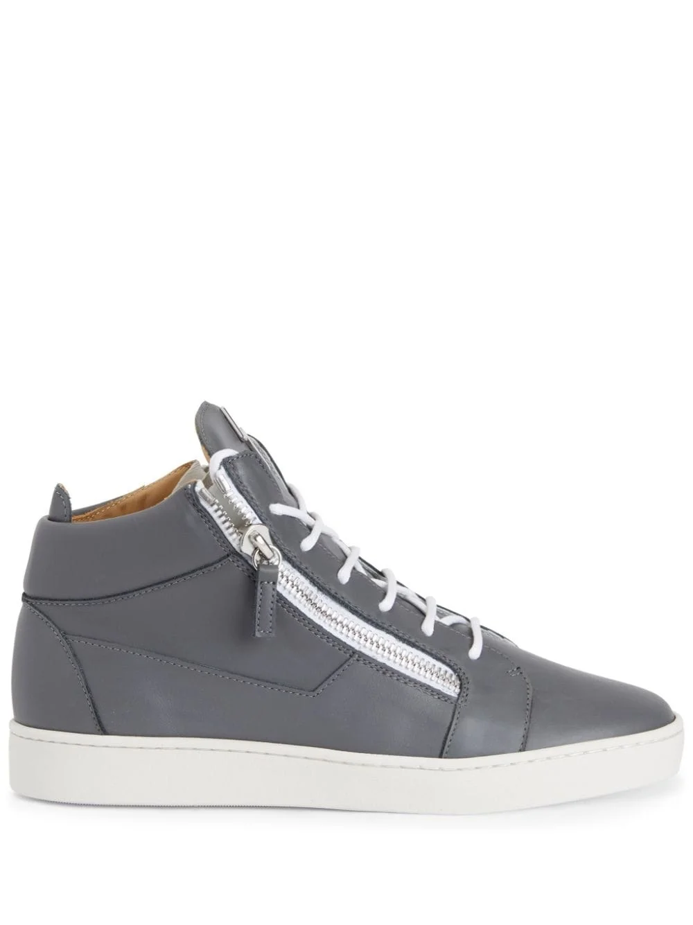 Kriss mid-top sneakers Highlights - Ash grey - Leather - Silver-tone logo plaque - Round toe - Front lace-up fastening - Side zip fastening - Branded leather insole - Flat rubber sole Made in Italy Composition Outer: Leather 100% Sole: Rubber 100% Lining: Fabric 100%