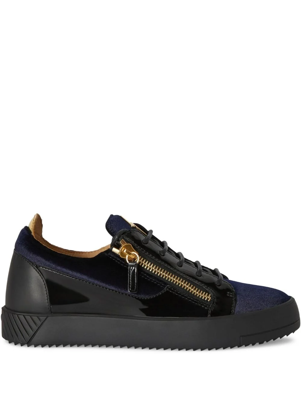 Frankie double-zip low-top sneakers Highlights - Midnight blue - Front lace-up fastening - Side zip fastening - Logo plaque - Contrasting heel counter Made in Italy Composition Outer: Fabric 100%, Polyurethane 100% Sole: Rubber 100% Lining: Polyurethane 100%