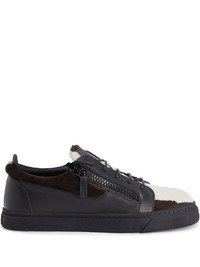 Frankie double-zip low-top sneakers Highlights - Black - Front lace-up fastening - Side zip fastening - Flat rubber sole - Logo patch at the tongue Made in Italy Composition Outer: Suede 100%, Pony Fur 100%, Calf Leather 100% Sole: Rubber 100% Lining: Calf Leather 100%