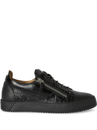 Frankie double-zip low-top sneakers Highlights - Black - Front lace-up fastening - Side zip fastening - Logo plaque - Embossed crocodile effect Made in Italy Composition Outer: Leather 100% Sole: Rubber 100% Lining: Calf Leather 100%