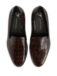 Gatien crocodile-effect leather loafers Expertly made in Italy from leather, this rich brown iteration of the Gatien loafers is embossed with an intricate crocodile effect throughout for a highly tactile finish. Branded at the insole for a recognisable finish, the pair speaks to Giuseppe Zanotti's craftsmanship and attention to detail. Highlights - Chocolate brown - Leather - Embossed crocodile effect - Slip-on style - Almond toe - Branded leather insole - Low stacked heel Made in Italy Composition Outer: Leather 100% Sole: Leather 100% Lining: Leather 100%
