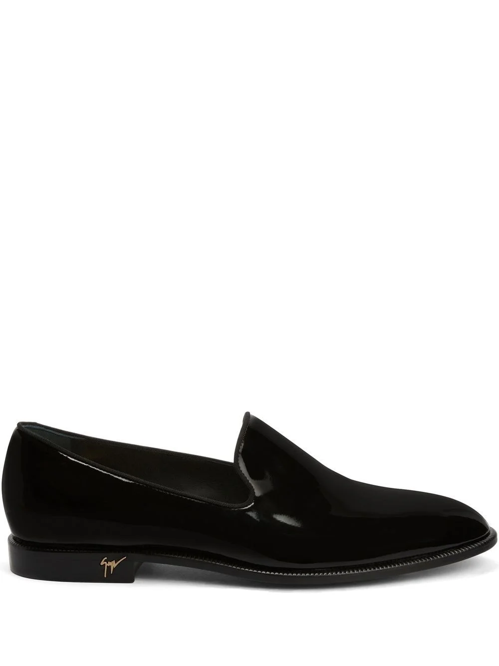 Gatien patent leather loafers Highlights - Jet black - Artificial leather - Leather - Patent finish - Slip-on style - Gold-tone logo plaque at the heel - Almond toe - Flat leather sole Made in Italy Composition Lining: Leather 100% Sole: Leather 100% Outer: Polyurethane 66%, Polyester 34%